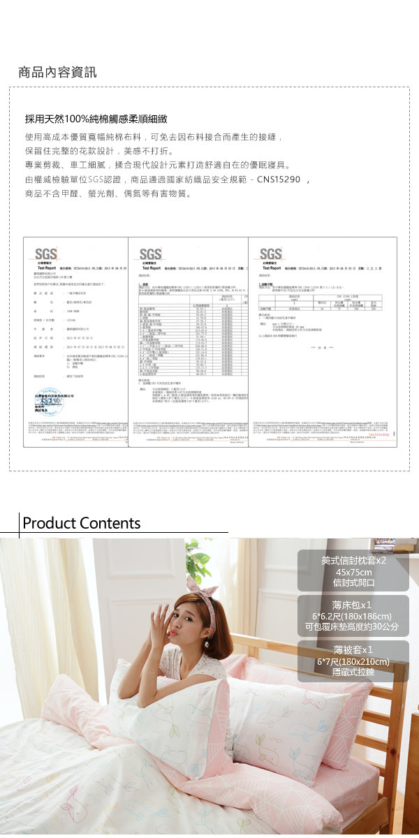 - ◆內容件數:床包x1+被套x1+美式信封枕套x2